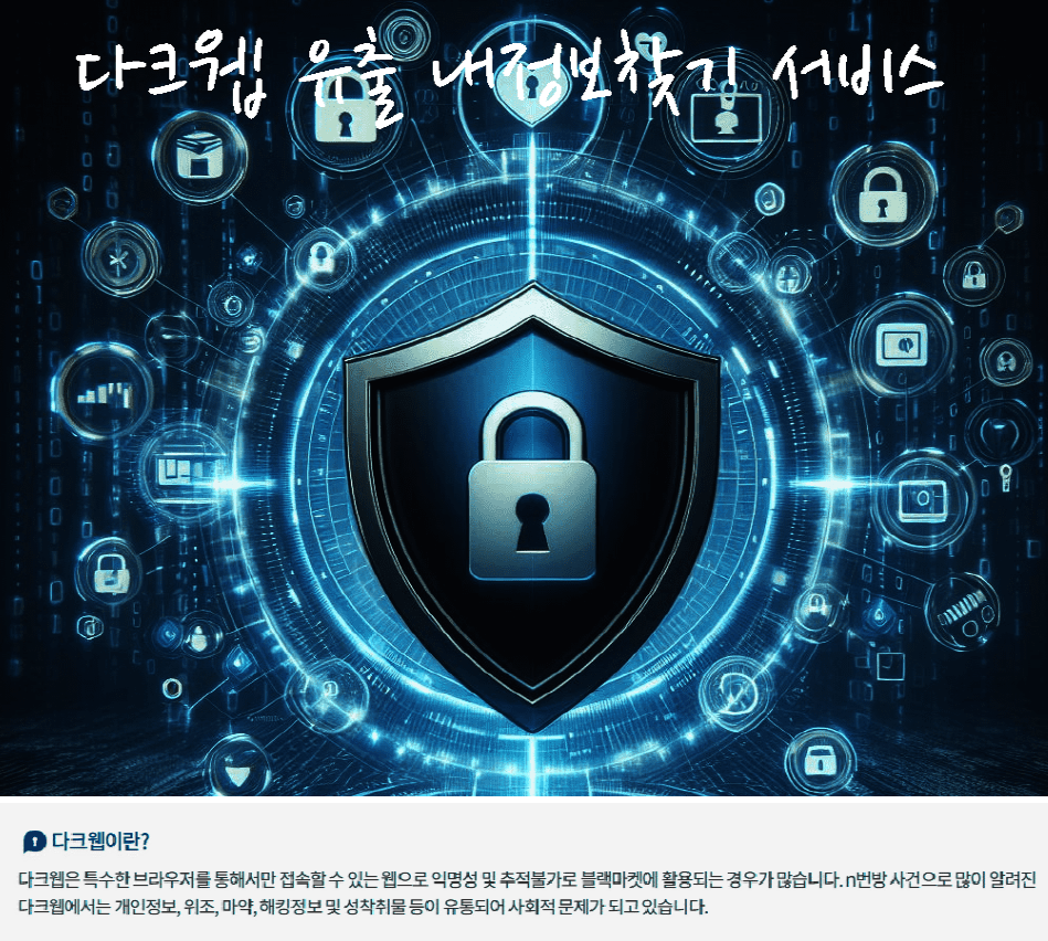 - 다크웹 유출 확인 : '다크웹 유출 확인' 서비스를 통해 개인정보 유출 여부를 확인하고, 필요한 조치를 취합니다.