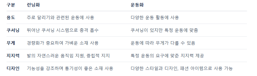 ◎ 러닝화와 운동화 구분