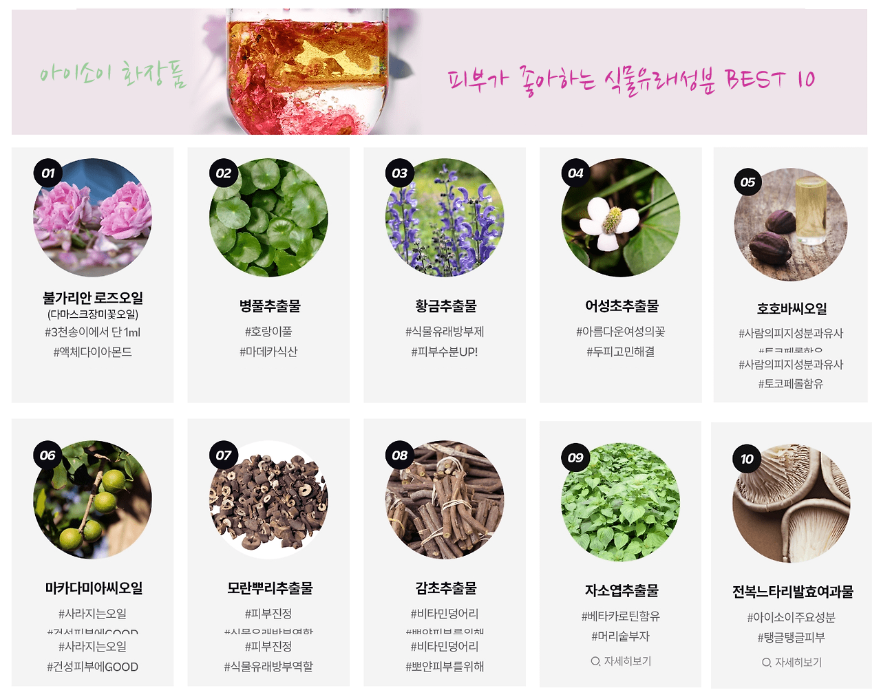 - 천연 성분의 중요성 : 아이소이는 화학 성분 대신 천연 식물성 성분만을 사용하여 제품을 제조하며, 이를 통해 피부에 안전하고 효과적인 제품을 제공한다는 메시지를 전달합니다.