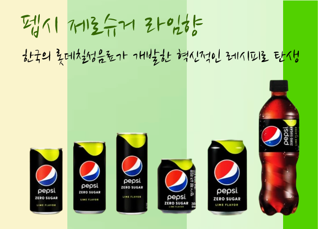 펩시 제로 슈거 라임은 한국인의 입맛에 맞춘 새로운 제로콜라 레시피로, 롯데칠성음료가 개발하여 펩시코 본사에 제안한 결과물입니다. 일반적으로 글로벌 음료 브랜드의 제품 개발은 본사에서 주도하지만, 이번에는 한국의 특화된 레시피가 승인되어 출시되었습니다. 이로 인해 펩시는 한국 제로콜라 시장에서 큰 성공을 거두게 되었습니다.