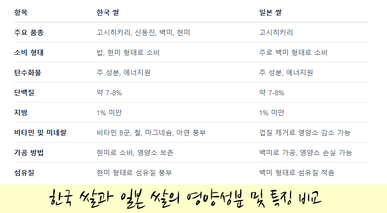 한국에서 생산되는 쌀, 특히 고시히카리 품종은 일본 소비자들에게 친숙한 맛과 질감을 제공합니다. 고시히카리는 쫄깃하고 부드러운 식감으로 일본에서 인기가 높은 품종이며, 한국에서도 품질이 높게 재배되고 있습니다. 이러한 품질과 맛은 일본 소비자들이 한국 쌀을 선호하는 중요한 이유 중 하나입니다.