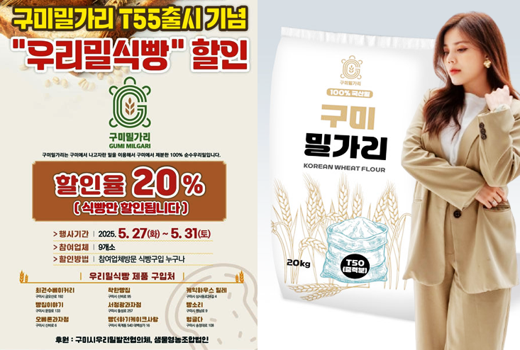 구미밀가리는 2025년 5월 27일에 공식 출시되며, 6월 2일부터 금오산 로컬푸드 직매장과 도개·해평 하나로마트에서 1Kg 기준 4,500원에 판매될 예정입니다. 출시 기념으로 5월 27일부터 31일까지 구미 지역의 9개 제과점에서 구미밀가리를 100% 사용한 식빵을 20% 할인된 가격에 판매하는 행사도 진행됩니다.