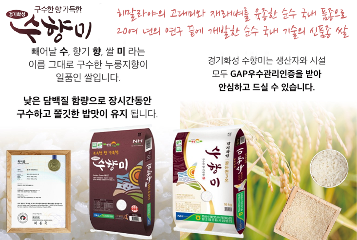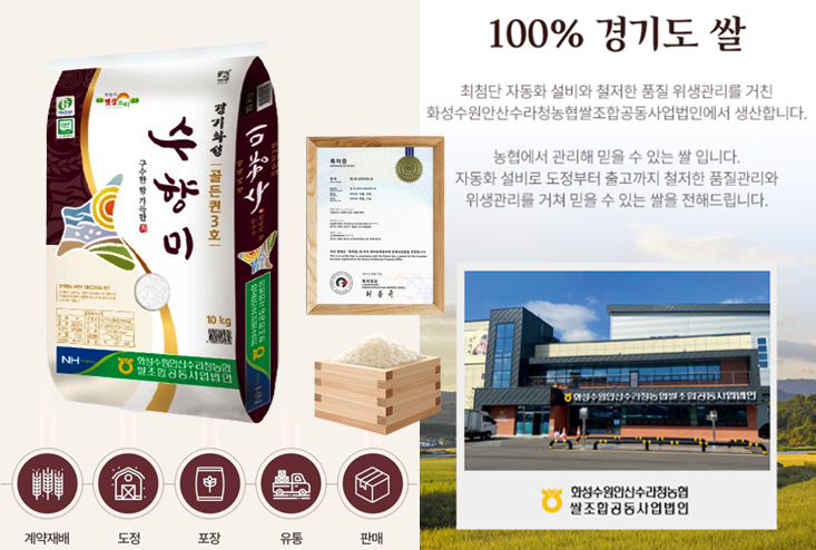경기도 화성에서 생산되는 '수향미'는 지역 농가와 농협이 협력하여 재배하는 특화 쌀입니다.
