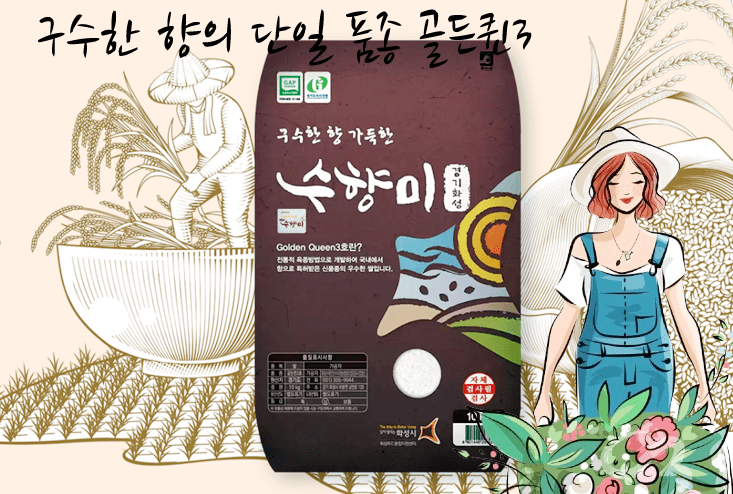 '수향미'는 ㈜시드피아가 개발한 신품종 '골든퀸 3호'의 화성시 브랜드명으로, 2021년 6월 화성시는 ㈜시드피아로부터 '골든퀸 3호'에 대한 전용실시권을 취득하여 2032년까지 수향미 브랜드를 독점적으로 재배하고 유통할 수 있는 권리를 확보했습니다. (2024년 대한민국우수품종대회 대통령상 수상!)