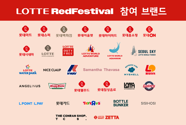 롯데레드페스티벌은 롯데마트와 슈퍼를 넘어, 롯데그룹의 다양한 계열사가 총출동하여 더욱 풍성한 혜택을 제공합니다.