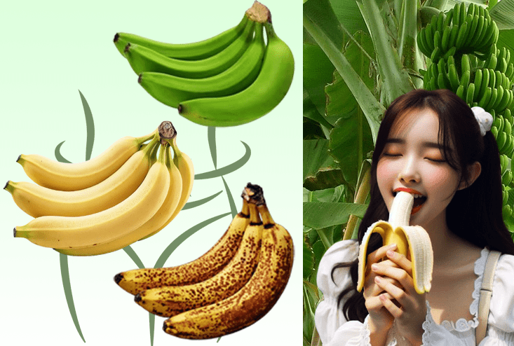 바나나는 숙성 정도에 따라 색깔이 변하며, 각 색깔에 따라 다른 영양 성분과 효능을 가지고 있습니다.