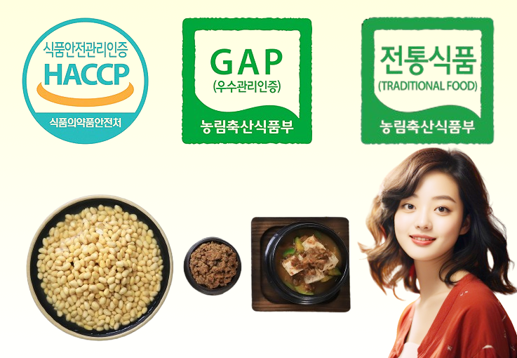 ● 전통식품 품질 인증 : 한국의 전통식품에 대해 정부가 품질을 보증하는 제도로, 된장, 고추장, 간장 등이 포함됩니다.