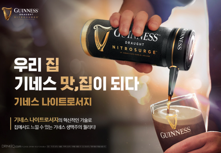 ● 기네스 나이트로서지 : 이 디바이스는 집에서도 생맥주 품질을 구현할 수 있게 도와줍니다.