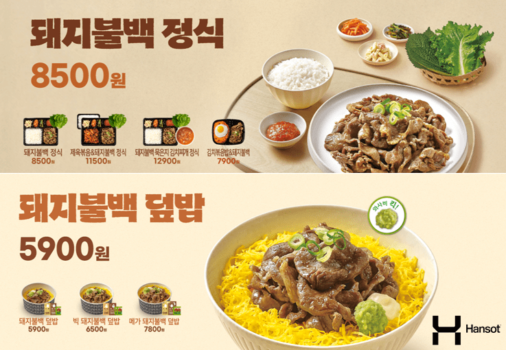 특히 '돼지불백 덮밥'은 메인 재료인 돼지고기에 한솥 특제 간장 양념을 더해 '단짠'의 절묘한 감칠맛을 극대화했으며, 여기에 고추냉이(와사비)를 곁들여 풍미를 한층 끌어올린 것이 특징입니다. 맛있고 든든한 식사를 합리적인 가격에 제공하며 '가심비(가격 대비 심리적 만족감)'까지 충족시킨 것이 큰 호응을 얻었습니다.