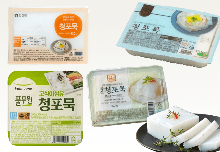 (출처 = 만개의레시피, 묵 제조사 제품들)