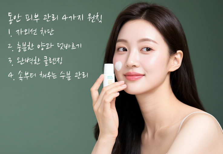 동안을 위한 비결은 결국 '자외선 차단, 충분한 양과 덧바르기, 완벽한 클렌징, 그리고 속부터 채우는 수분 관리'라는 네 가지 기본 원칙에 있습니다. 이길여 총장님과 많은 동안 연예인들이 증명하듯, 꾸준한 자기관리는 시간을 거스르는 가장 강력한 힘입니다. 오늘부터 이 황금 원칙들을 실천하여 당신의 피부 나이를 되돌리고, 건강한 아름다움을 가꾸시길 바랍니다.