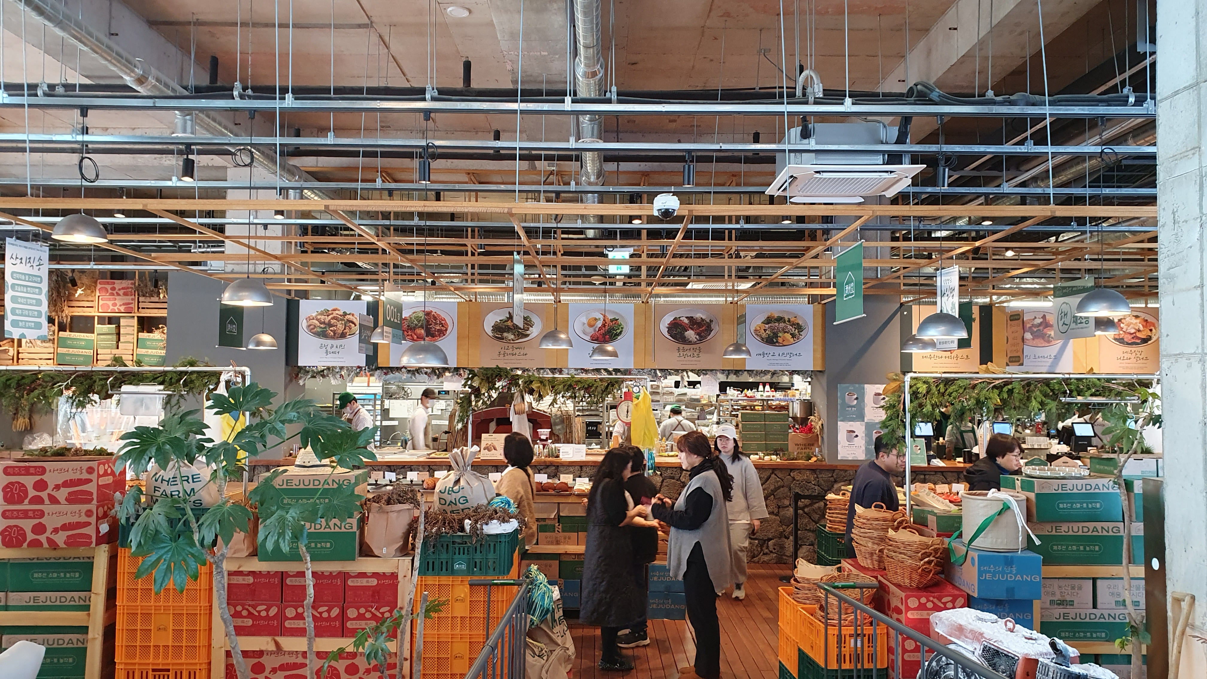 제주당은 다양한 풍경을 볼 수 있는 좌석이 마련되어 있고, 갓 구워낸 신선한 빵을 바구니에 담아 계산하는 시스템으로 특히 제주당에서만 맛볼 수 있는 오메기빵, 현무암 말차 소보로, 감귤빵, 당근빵은 꼭 드셔보시길 추천합니다. 음료는 아메리카노, 카페라테, 농부의 건강주스, 새코롬 샹그리아, 달코롬 뱅쇼 에이드 등 다양한 음료가 준비되어 있는데, 아이들을 위한 소금우유와 초콜릿우유도 마련되어 있어 가족동반으로 방문하셔도 좋습니다. (단지 빵 가격에 비해 음료 가격이 조금 비싼 편이란 것을 알고 가시면 좋을 듯합니다.)
