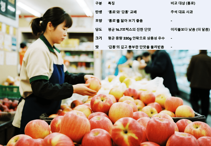🔍 홍로와 감홍의 장점만 쏙! 신품종 사과 '이지플'의 특별한 매력 탐구 (맛, 당도, 크기)