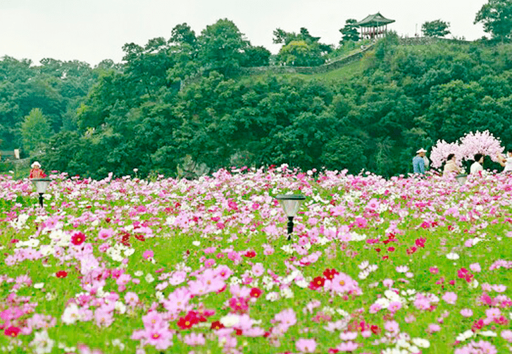 ● 주요 정보 : 관람료 무료, 황화 코스모스 대규모 군락, 역사 유적과 조화.