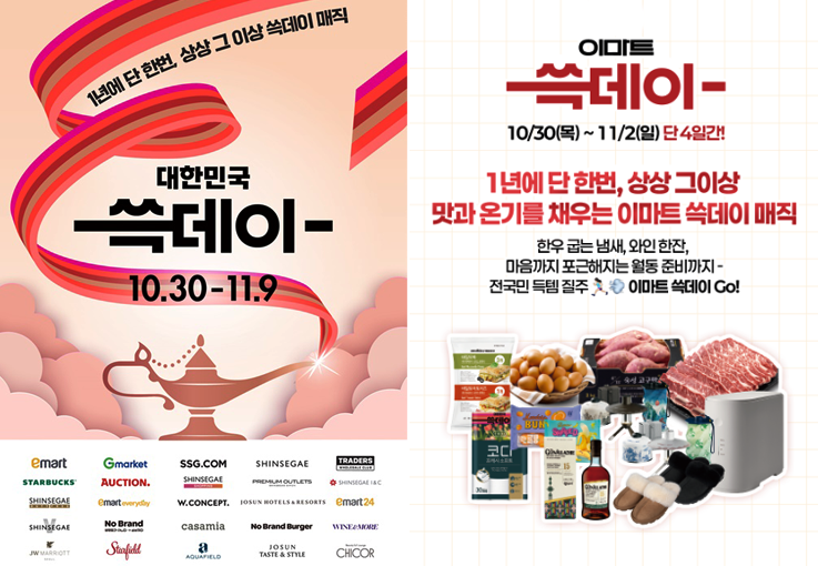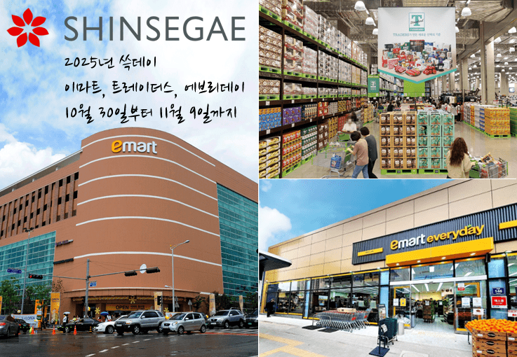 2025년 쓱데이는 10월 30일부터 11월 9일까지 총 11일간 신세계그룹 전체에서 진행되는데요. 그 화려한 시작을 알리는 곳은 바로 이마트, 트레이더스, 에브리데이입니다. 특히 이마트와 트레이더스는 10월 30일(수)부터 11월 2일(토)까지 4일간, 에브리데이는 11월 5일까지 파격적인 할인 행사를 펼칩니다.