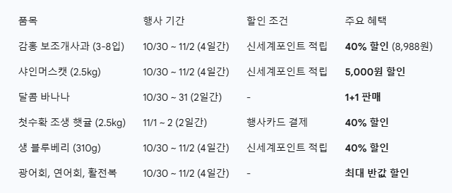 1. 행사 기간 확인 : 이마트는 10/30~11/2, 에브리데이는 ~11/5까지.