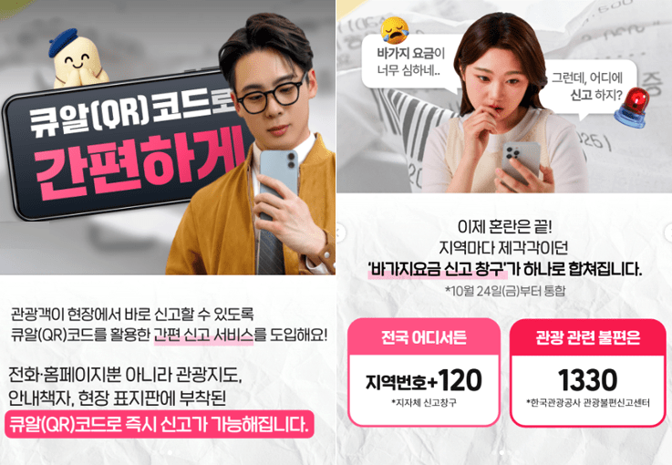 관광객이 QR코드를 통해 신고를 접수하면, 이 두 창구를 통해 관계 부처 및 지자체와 실시간으로 연계되어 신속한 현장 점검 및 조치가 이루어지게 됩니다.