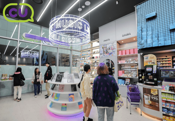 ● 뮤직 라이브러리(CU 에이케이&홍대점) : K-팝을 주제로 한 특화 매장으로, 외국인 관광객들에게 K-컬처를 체험하는 필수 코스로 자리매김했습니다. 라면, 스낵 등 한국 인기 상품과 함께 굿즈 등을 판매하며 외국인 관광객 유치에 특화된 전략을 보여줍니다.