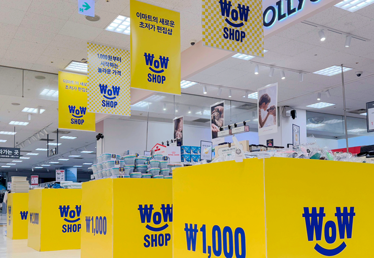 ● 이마트 '와우샵(WOW SHOP)' : 생활용품 1,300여 개를 5천 원 이하로 판매하는 초저가 편집존을 운영합니다. 온라인 검색보다 저렴한 '파격가'를 통해 소비자가 매장을 직접 방문하게 만드는 전략입니다.