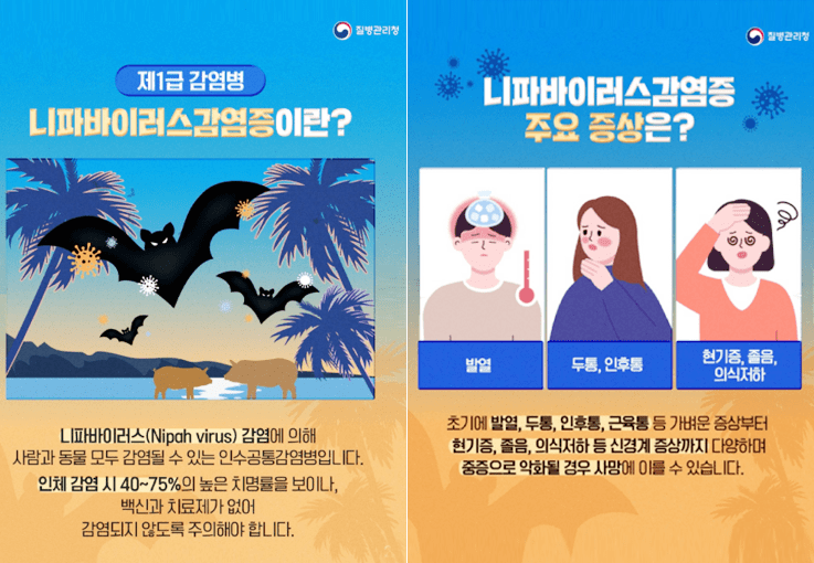 #니파바이러스 #인도니파바이러스 #1급감염병 #대추야자수액 #해외여행주의사항 #질병관리청1339