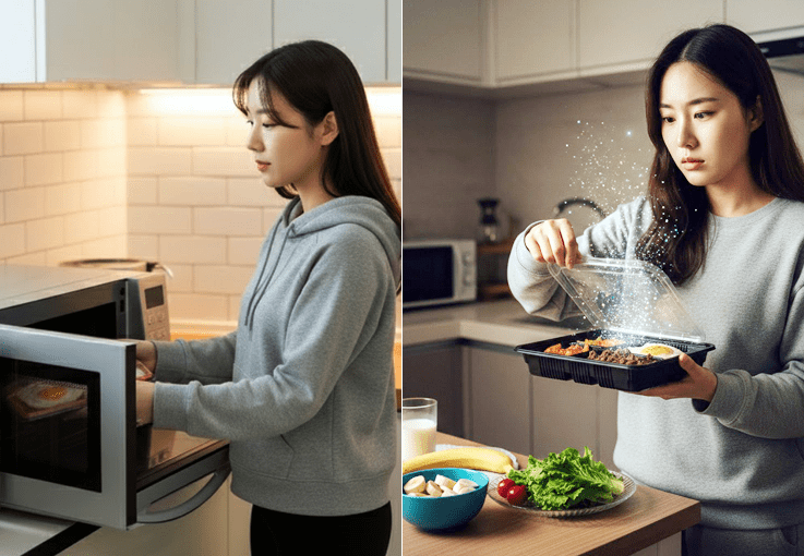 편의점 도시락을 사 오면 귀찮더라도 유리나 도자기 그릇에 옮겨 담으세요. 이 작은 습관 하나가 환경호르몬 노출을 90% 이상 차단합니다.