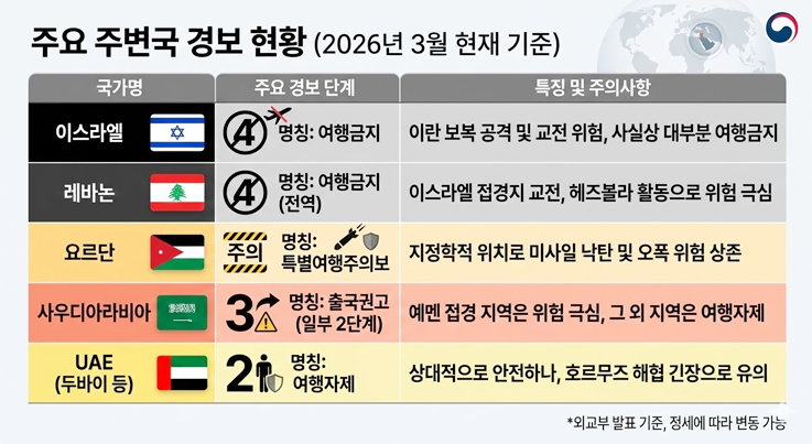 단순히 "위험하니까 가지 마세요"라는 권고를 넘어, 정부가 법적 처벌이라는 초강수를 두며 4단계를 발령한 이유는 무엇일까요? 합리적이고 현명한 소비자라면 당장의 취소 수수료보다 더 큰 가치인 '생명'과 '법적 신용'이라는 리스크를 관리해야 합니다. 오늘 이 글에서는 외교부의 여행경보 체계를 완벽히 해부하고, 이란을 포함한 주변 아랍 국가들의 실시간 상황, 그리고 우리가 가져야 할 성숙한 시민 의식에 대해 심도 있게 다뤄보겠습니다.