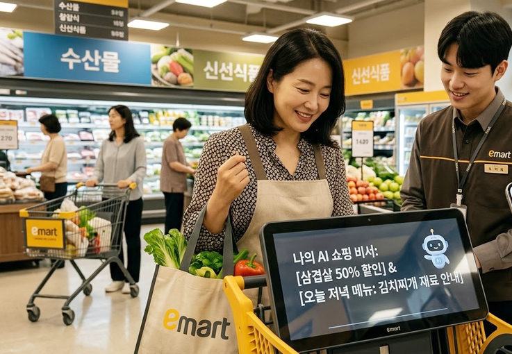 소비자 입장에서 이마트 2.0은 혁명적입니다. AI 에이전트 커머스가 도입되면 내가 일일이 검색하지 않아도 AI가 우리 집 냉장고 상태와 개인의 취향을 분석해 가장 합리적인 타이밍에 최저가 상품을 제안하고 배송 동선을 최적화하여 신선도를 극대화합니다. 유류 할증료가 오르는 등 물류비용 상승 압박 속에서도 AI가 최적의 경로를 찾아내어 배송비 부담을 낮춰주는 효과도 기대할 수 있습니다.