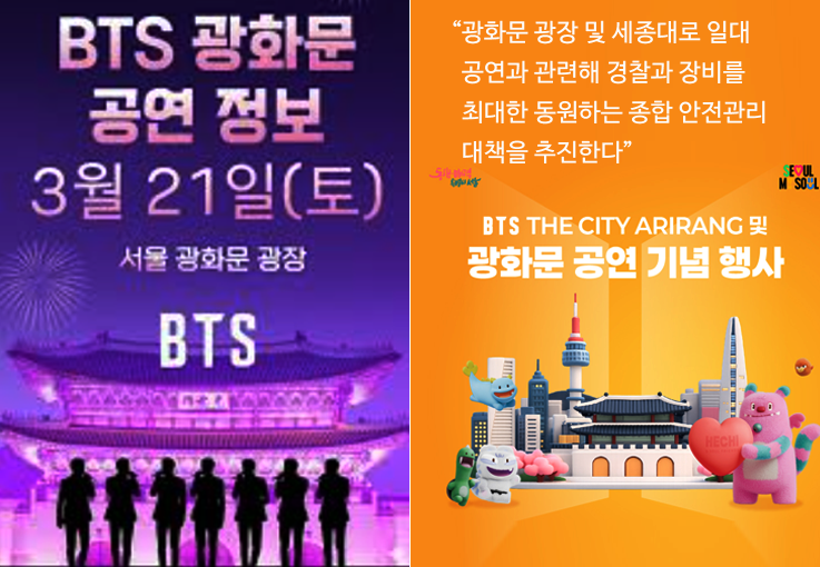 이번 공연은 단순한 콘서트를 넘어 국가적인 '안전 시험대'라고 봐도 무방합니다. 정부는 3월 19일부터 종로구와 중구 일대의 테러경보 단계를 '주의'로 상향했습니다. 국제 정세가 불안정한 만큼 만에 하나 있을 사고를 원천 차단하겠다는 의지죠.