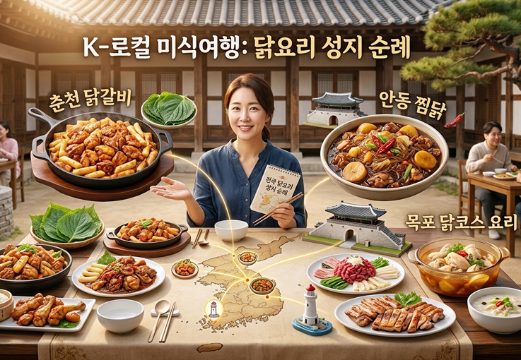 우선 여행 동선을 짤 때 춘천 안동 목포를 잇는 삼각 편대를 기억하세요. 춘천에서 철판 닭갈비로 시동을 걸고, 안동에서 당면 가득한 찜닭으로 허기를 채운 뒤, 목포에서 바닷바람과 함께 닭요리 정식으로 마무리하는 코스는 실패 없는 미식 여행이 될 것입니다.