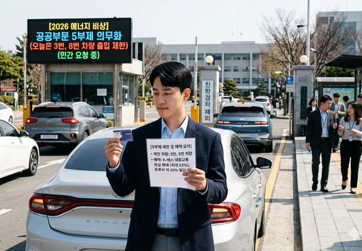 최근 중동 정세 불안으로 인한 자원안보 위기가 고조되면서, 정부가 강력한 에너지 절약 대책을 꺼내 들었습니다. 2026년 3월 25일부터 공공부문 승용차 5부제가 의무화되고, 민간으로의 확대 가능성까지 열리면서 출퇴근 풍경에 큰 변화가 예상됩니다. 오늘 포스팅에서는 이번 정책의 핵심 내용과 위반 시 불이익, 그리고 우리가 챙길 수 있는 실질적인 혜택까지 완벽하게 정리해 드립니다.
